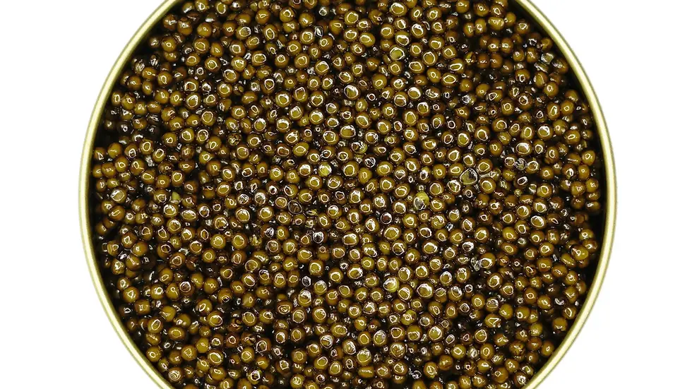 Amber hues typically come from older, more mature sturgeon. Expect larger pearls with a softer pop and a luxuriously buttery flavor.